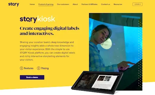 With STQRY Kiosk, you can launch your own digital labels and interactive experiences. With our content themes, it’s easy to create beautiful, on-brand displays. You can keep things simple, with a digital label for each asset or room, or create more complex content journeys, such as timelines or interactive maps.