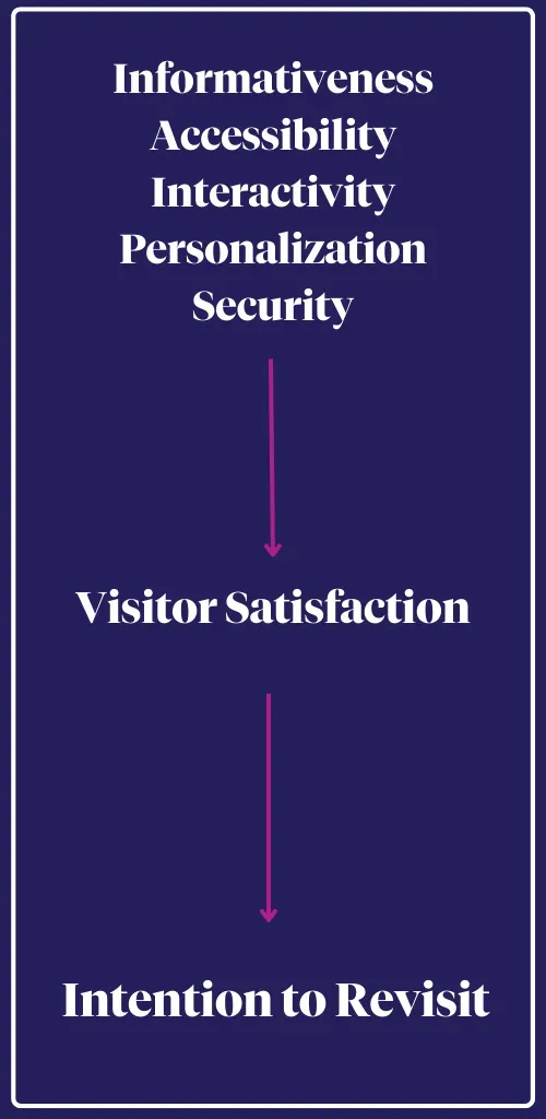 When visitors are more likely to revisit a site, they’re also more likely to spread it via word of mouth (WOM). When WOM is the main promotion method driving a new visit, that tourist will be more likely to have an accurate perception of the destination and their intentions for visiting are more likely to be satisfied (Xu et al., 2020).